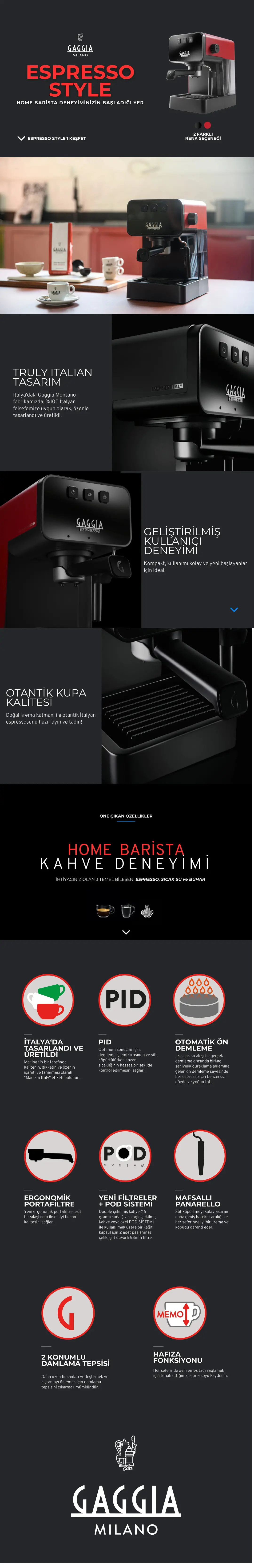 Gaggia Milano Espresso Style ile evinizde otantik İtalyan kahve keyfini yaşayın. Şık tasarımı ve iki farklı renk seçeneğiyle hem yeni başlayanlar hem de kahve tutkunları için mükemmel bir tercih.
